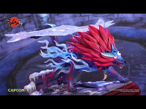 Okami, un clásico innegable, es famoso por su estilo artístico único, inspirado en las ilustraciones japonesas en tinta sumi-e. Esta estatua reimagina a Oki, pero se mantiene fiel a su apariencia de videojuego, con temibles ojos y pelaje rojos, llamas azules heladas arremolinándose alrededor de su cuerpo y su característica espada Kutone en su espalda.